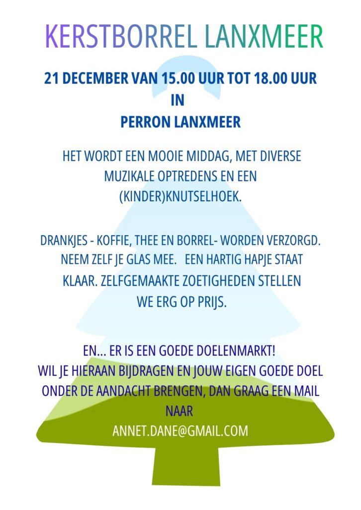Kerstborrel 21 december Perron Lanxmeer 15:00-18:00 uur
